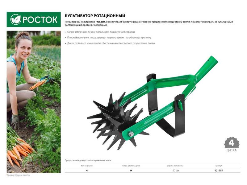 Садовый инвентарь arrow Культиватор садовый arrow Культиватор РОСТОК ротационный 4-х дисковый-410