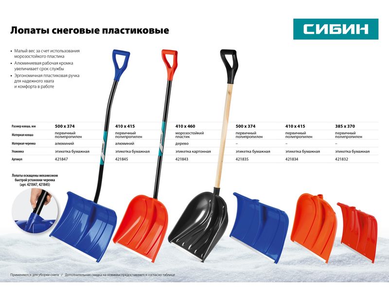 Снеговые лопаты СИБИН - оптимальное решение для уборки снега. Малый вес, надежная конструкция и отличные эксплуатационные характеристики делают их незаменимыми в зимний период.