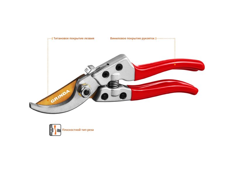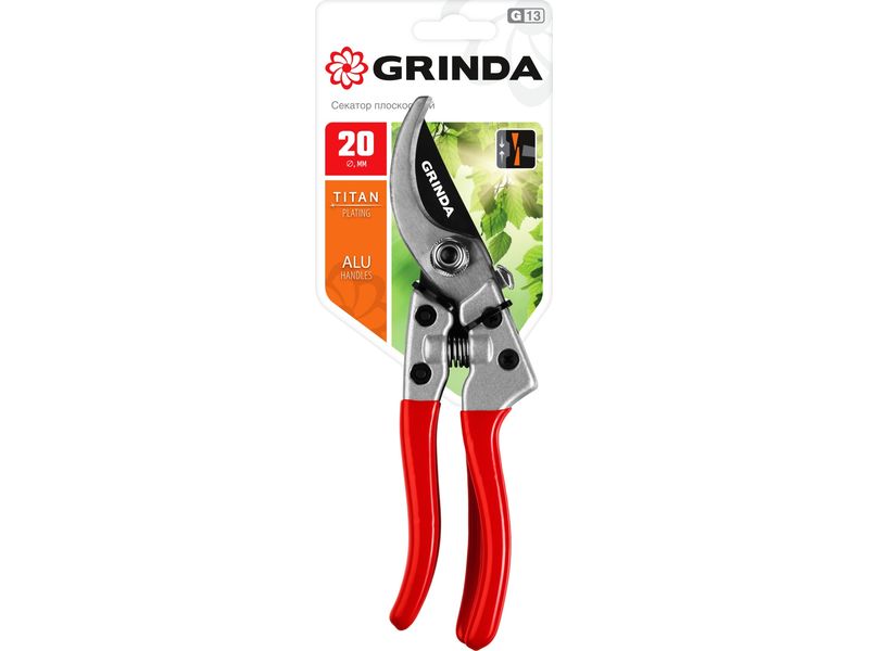 G-13 Секатор с алюминиевыми рукоятками, плоскостной, 205 мм, GRINDA