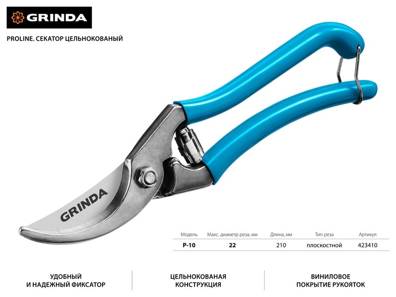 P-10 Секатор цельнокованый, плоскостной, 210 мм, GRINDA PROLine