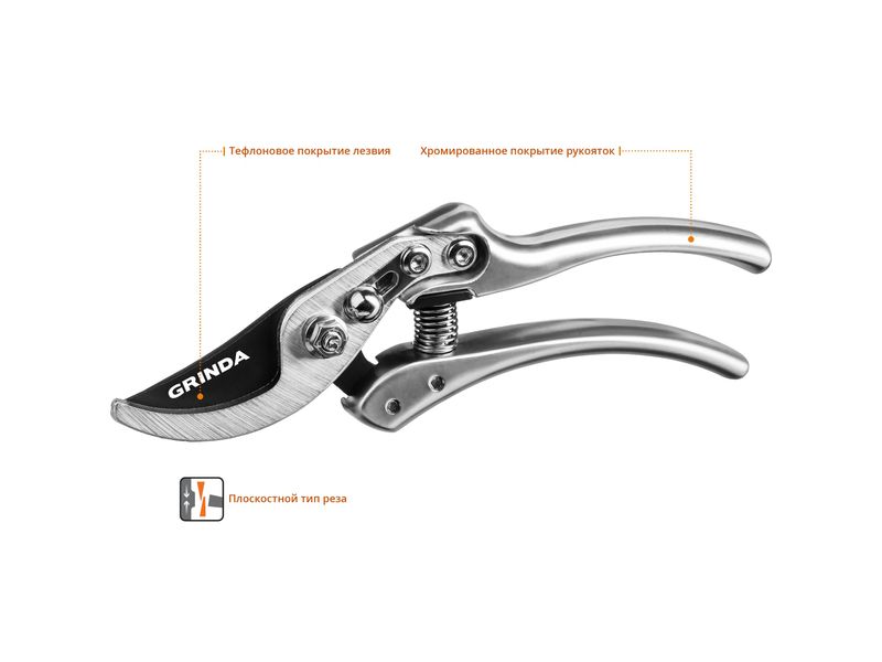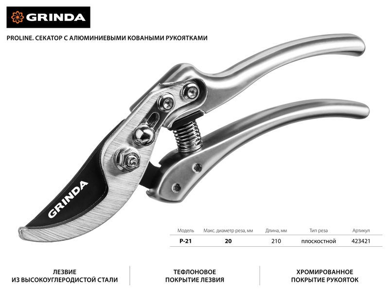 Секатор с алюминиевыми коваными рукоятками, плоскостной, 210 мм, GRINDA PROLine P-21