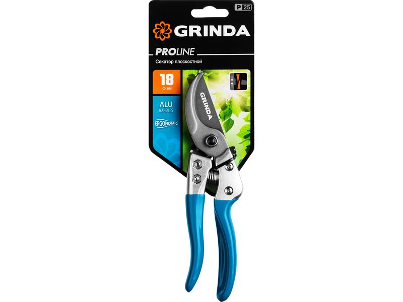 P-25 Секатор с эргономичными алюминиевыми рукоятками, плоскостной, 200 мм, GRINDA PROLine