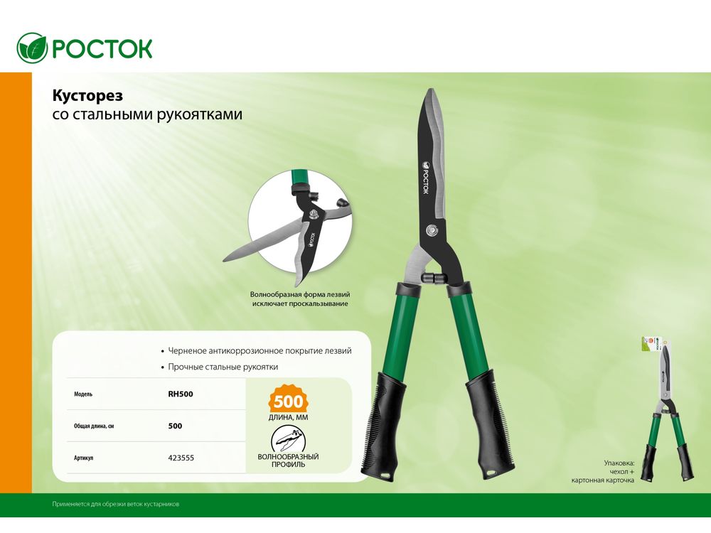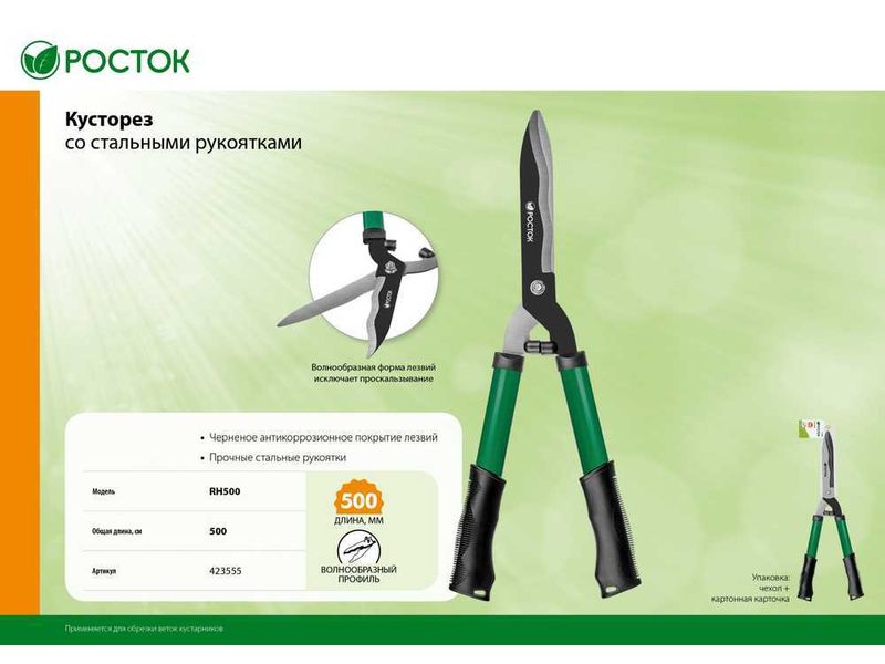 RH500 кусторез со стальными рукоятками, 500мм, РОСТОК