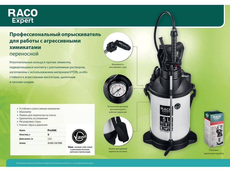 Купить RACO Pro 500 профессиональный опрыскиватель 5 л, для работы с агрессивными химикатами, переносной