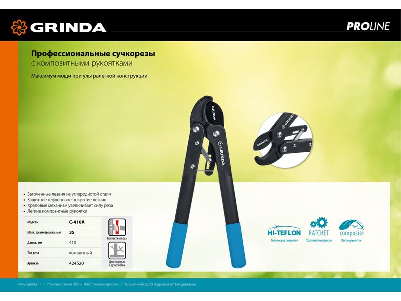 Купить C-410A контактный сучкорез с композитными рукоятками, с храповым механизмом, GRINDA
