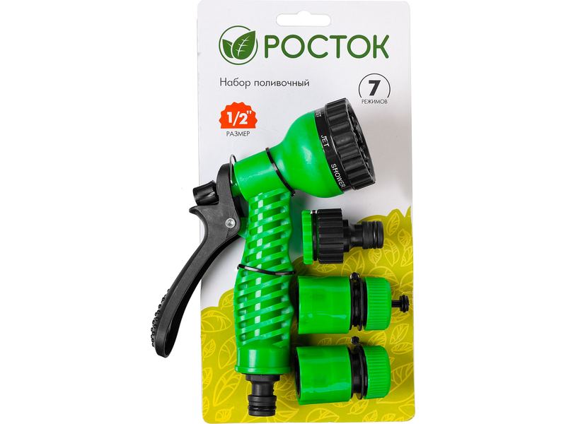 Поливочный набор РОСТОК очень удобен в применении, надёжен и долговечен. Обеспечивает быстрое подключение к наиболее распространённым типам поливочных систем без дополнительных аксессуаров.
