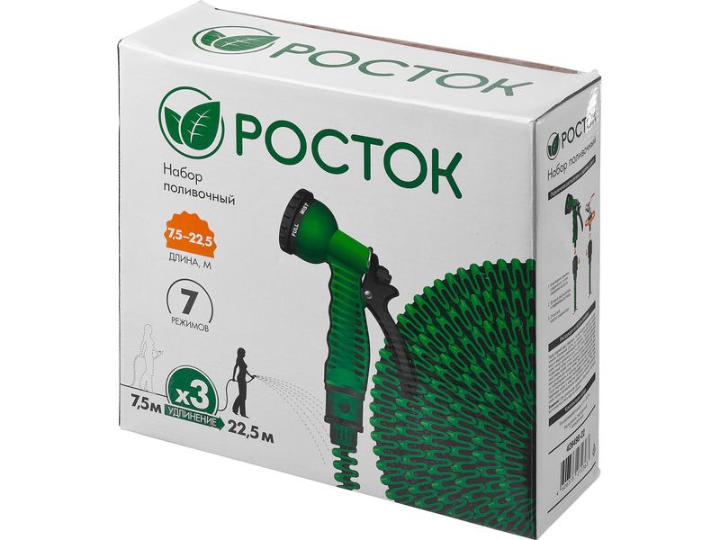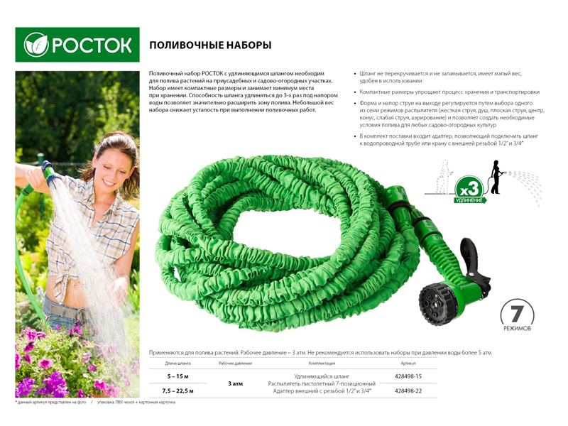 Набор поливочный: Шланг удлиняющийся 22,5 м, распылитель пистолетный 7 поз., адаптер внеш 1/2 x3/4 -391