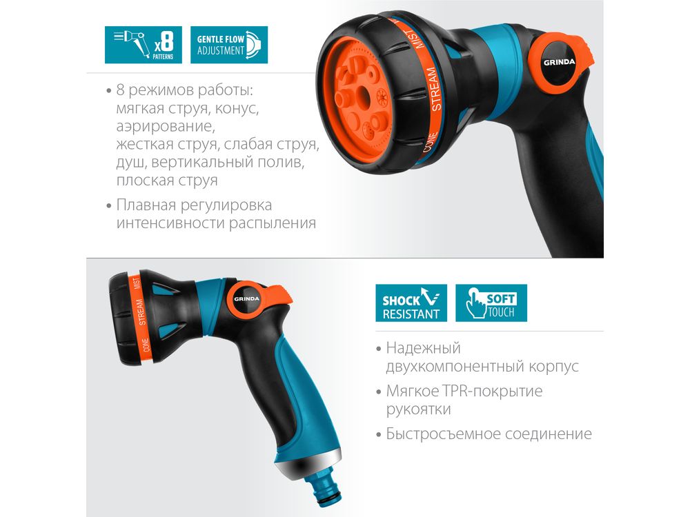 Профессиональные поливочные пистолеты-распылители GRINDA PROLine отличаются особой прочностью, надёжностью, удобством и долговечностью. Обеспечивают простое, быстрое и герметичное подключение к поливочной системе. Широкий ассортимент позволит подобрать модель идеально подходящую именно для ваших задач.