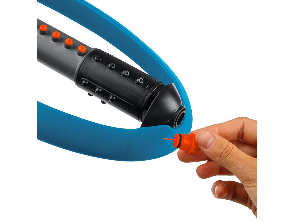19 форсунок обеспечивают равномерный, настраиваемый полив без образования луж. Настраиваемая ширина распыления позволит обеспечивает гибкое изменение площади полива. Конструкция из ударопрочного пластика гарантирует прочность и долговечность изделия.