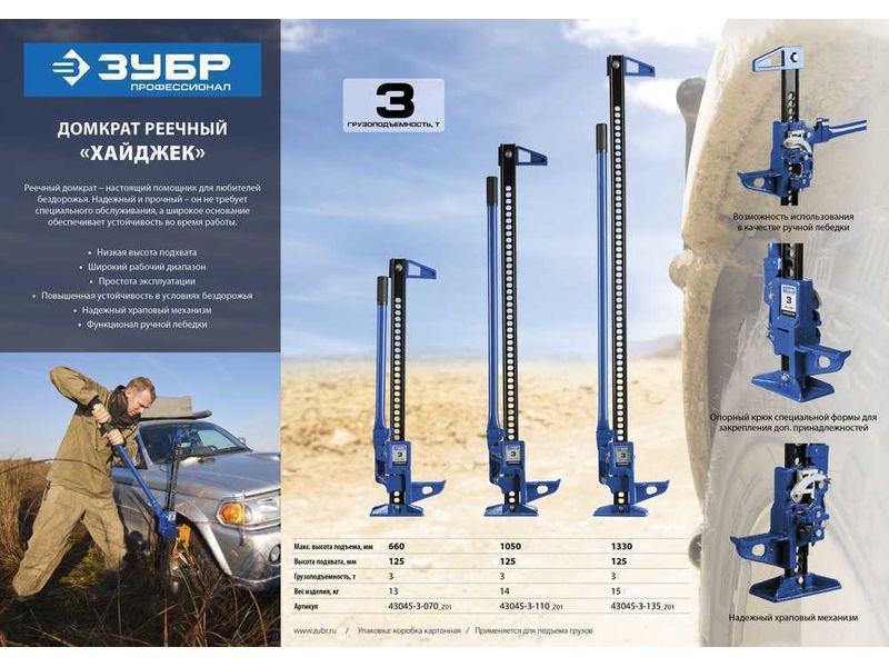 Настоящий помощник для любителей бездорожья. Надежный, прочный домкрат, не требует специального обслуживания.