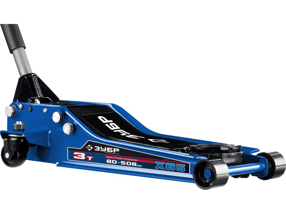 ЗУБР X85, 3 т, 80 - 508 мм, универсальный гидравлический подкатной домкрат для СТО, Профессионал (43051-3)