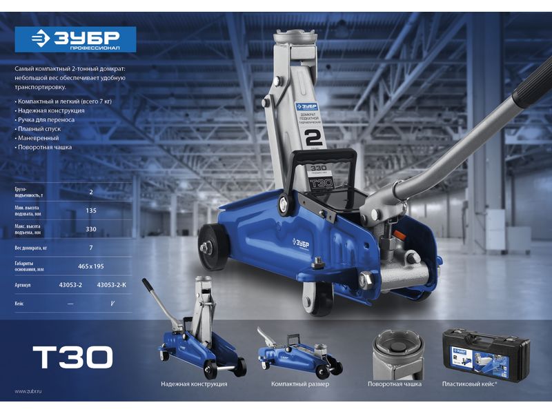 Эта модель домкрата одна из самых компактных подкатных домкратов на рынке. Небольшой вес и высокая грузоподъемность делают его удобным в использовании, хранении и транспортировке.