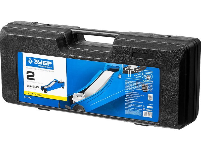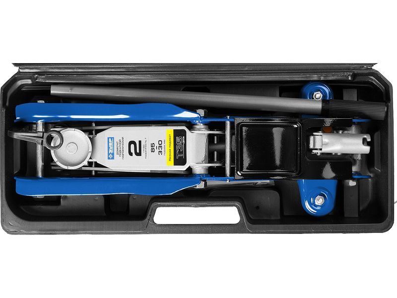 Низкая высота подхвата, высокая грузоподъемность и небольшой вес домкрата делают его одним из лидеров на рынке подкатных домкратов. Удобно работать в ограниченном пространстве бокса или гаража. Подходит для работы с низкими автомобилями с небольшим клиренсом. Пластиковый кейс удобен для хранения и переноски домкрата