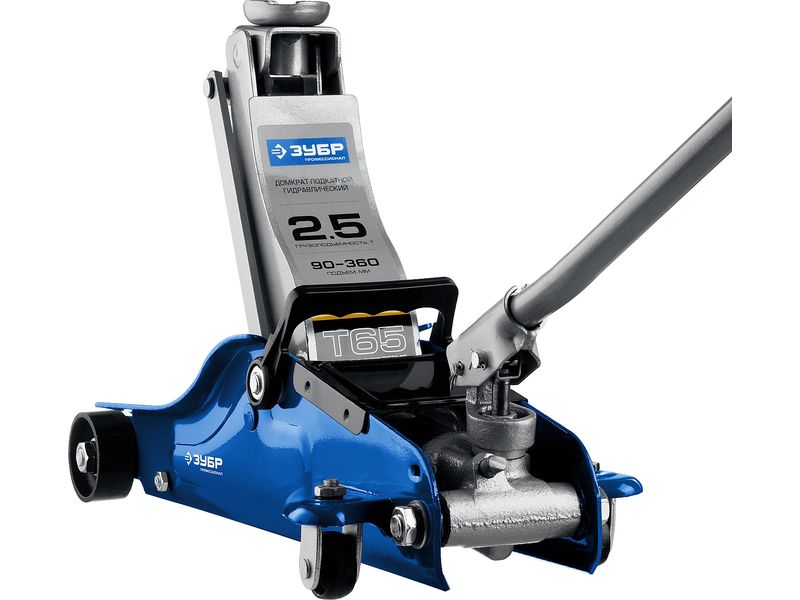 Домкрат гидравлический подкатной T65, 2,5т, 90-360мм, ЗУБР Профессионал 43057-2.5-664