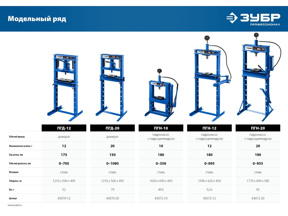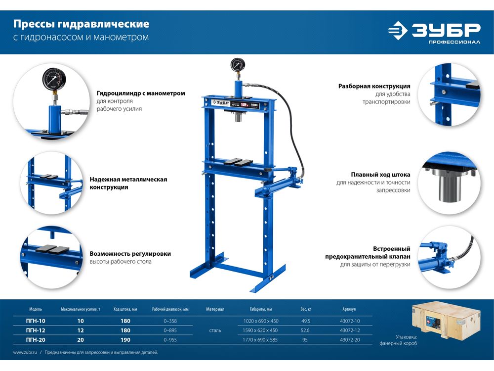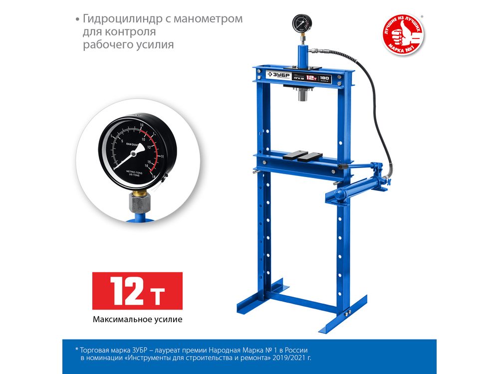Купить ЗУБР ПГН-12 12т пресс гидравлический с гидронасосом и манометром, Профессионал