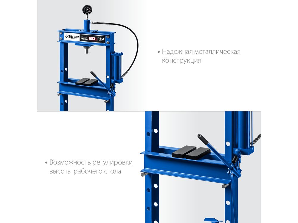 Купить ЗУБР ПГН-20 20т пресс гидравлический с гидронасосом и манометром, Профессионал