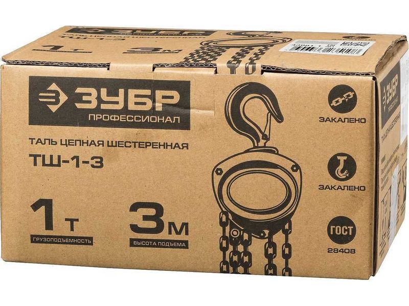 Таль цепная ТШ-1-3 шестеренная, ЗУБР Профессионал 43081-1, 1т / 3м