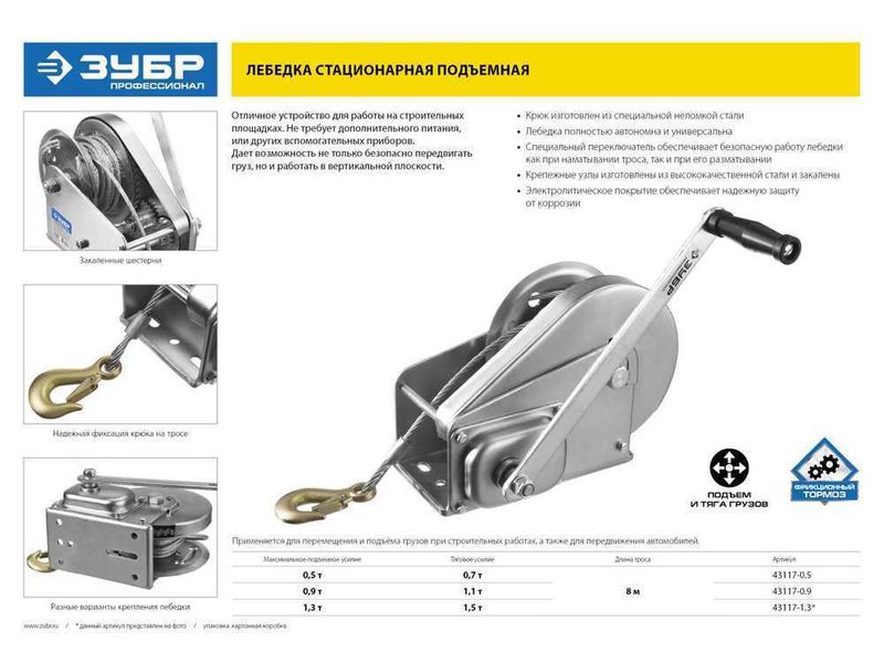 Отличное устройство для работы на строительных площадках. Не требует дополнительного питания или других вспомогательных приборов. Возможность безопасно не только передвигать груз, но и работать в вертикальной плоскости делает лебедку отличным универсальным устройством для перемещения грузов