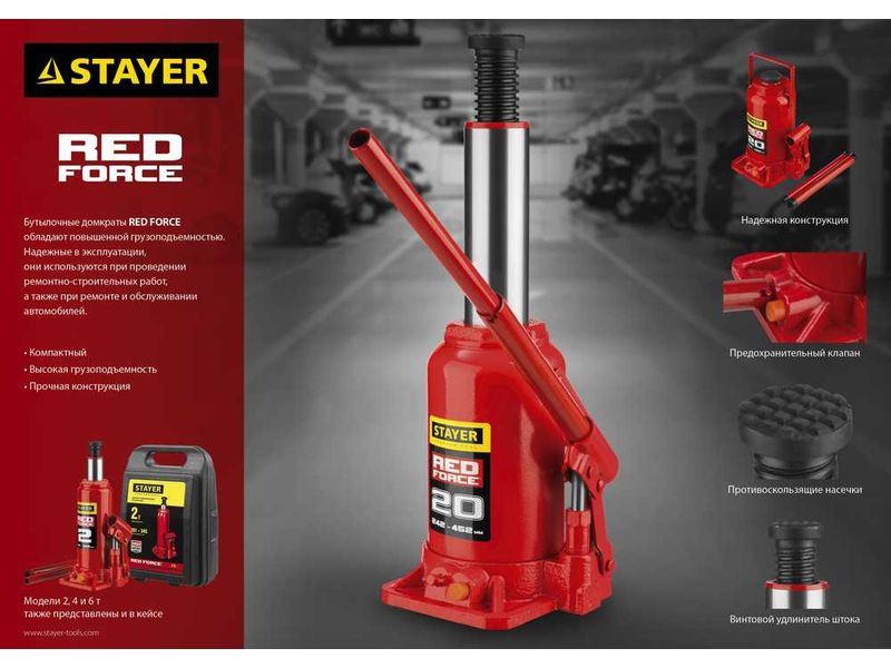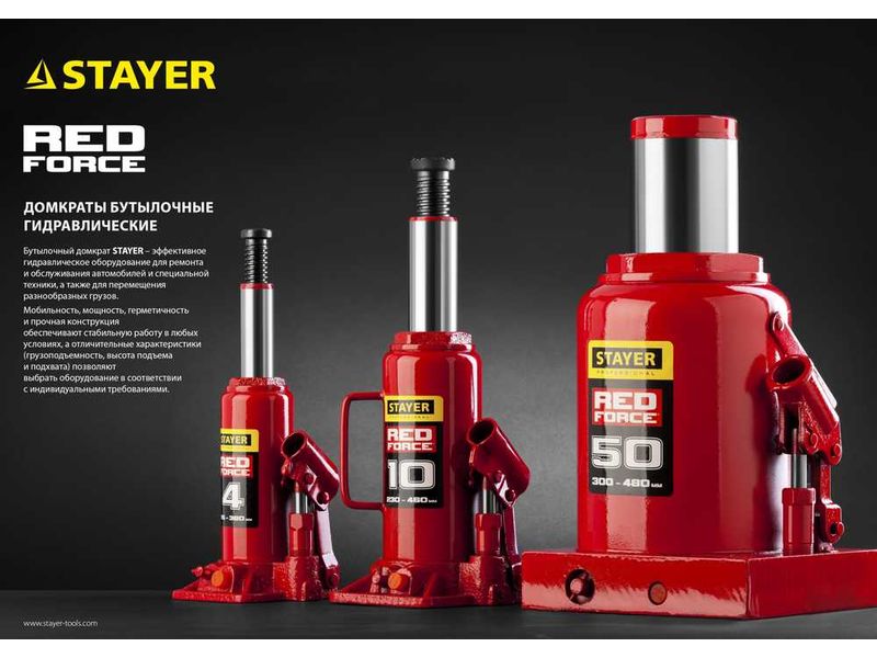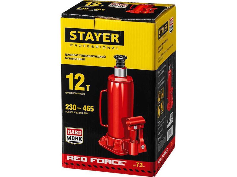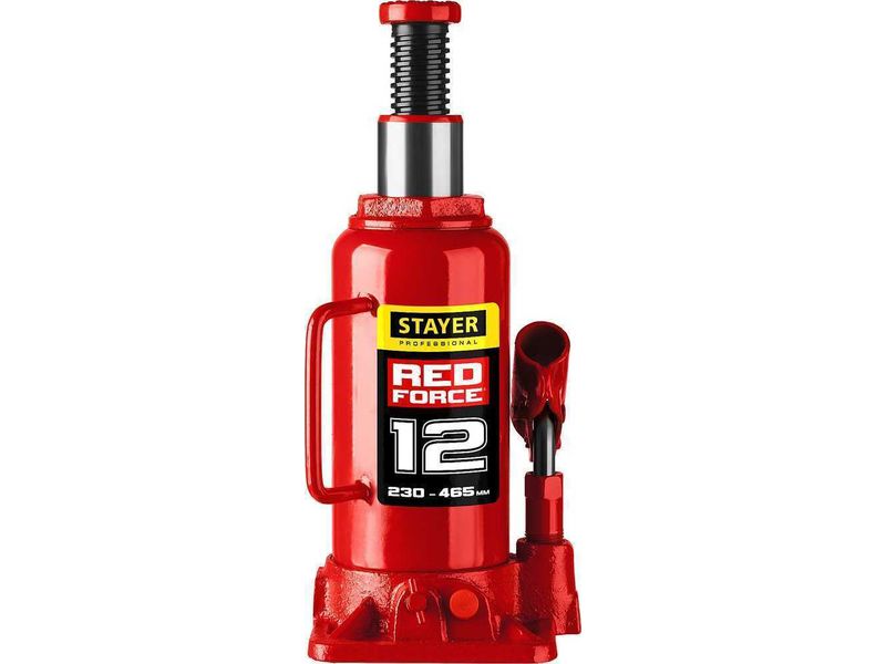 Домкрат гидравлический бутылочный "RED FORCE", 12т, 230-465 мм, STAYER 43160-12