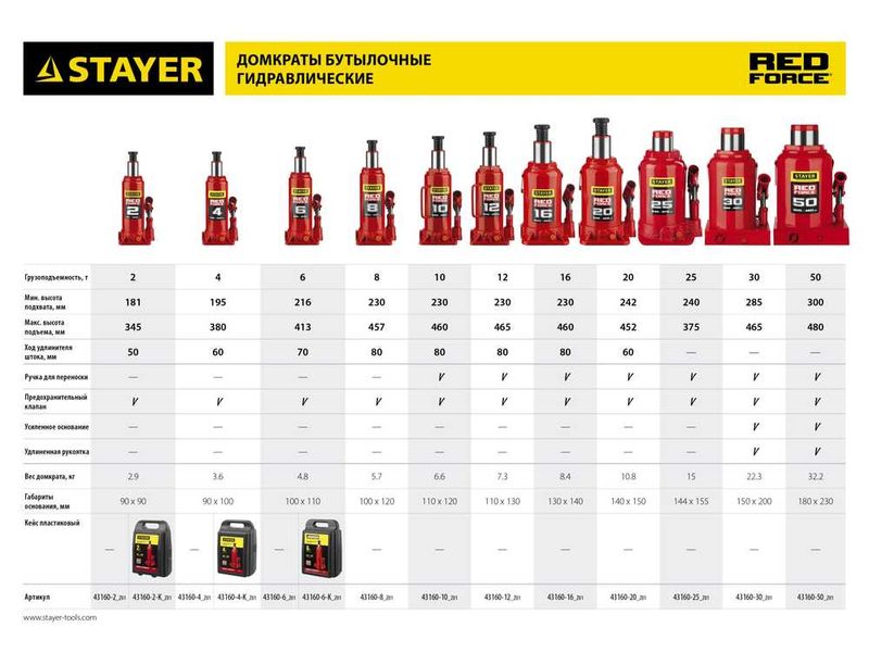 Купить Домкрат гидравлический бутылочный RED FORCE , 25т, 240-375 мм, STAYER 43160-25