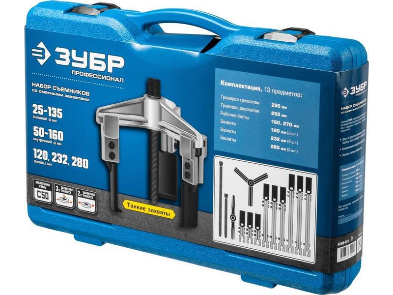 Купить Набор съемников со сменными захватами, ЗУБР Профессионал 43305-H13, в кейсе
