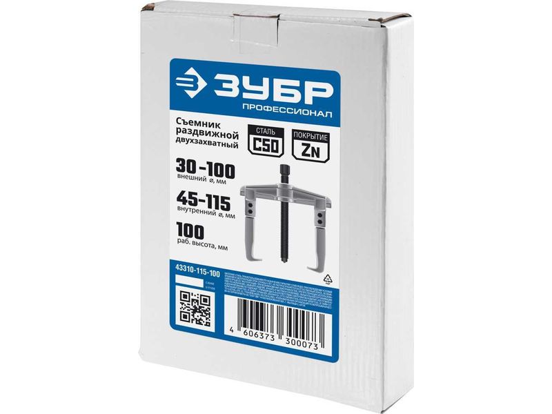 Съемник раздвижной 2-захватный, 100 мм, ЗУБР Профессионал 43310-115-100