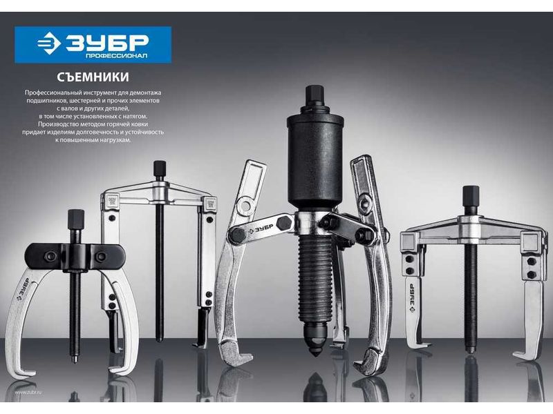 Захваты съемника выкованы из качественной инструментальной стали, что обеспечивает долгий срок службы при работе с высокими нагрузками. Позволяет работать с широким рядом узлов