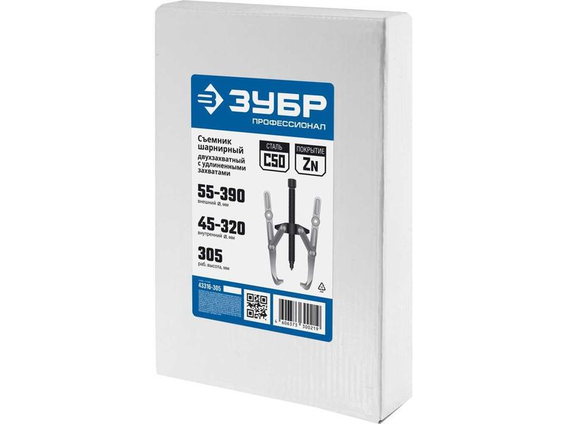 Съемник шарнирный 2-захватный с удлиненными захватами, 305 мм, ЗУБР Профессионал 43316-305