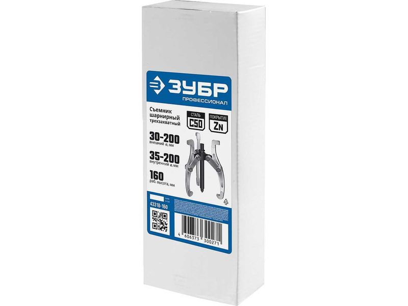 Съемник шарнирный 3-захватный, 160 мм, ЗУБР Профессионал 43318-160