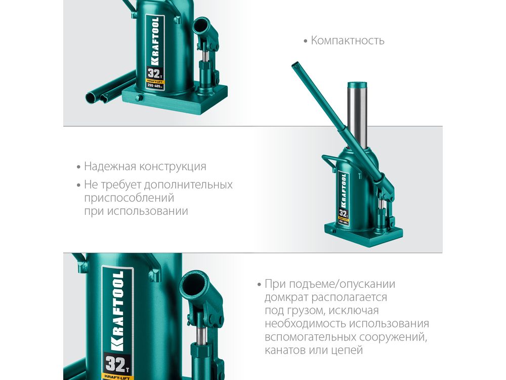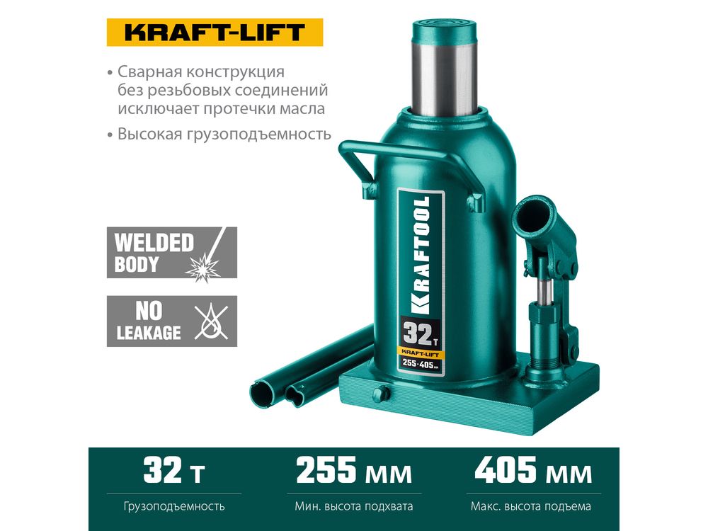 KRAFTOOL KRAFT-LIFT 32т, 255-405мм домкрат бутылочный гидравлический, KRAFT BODY