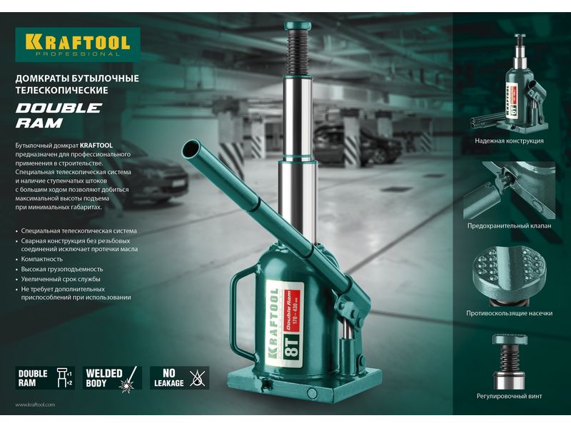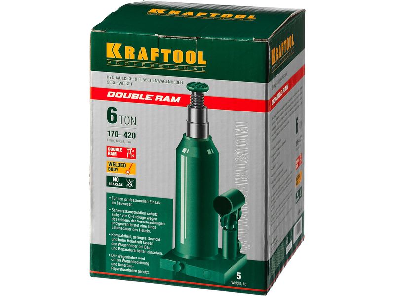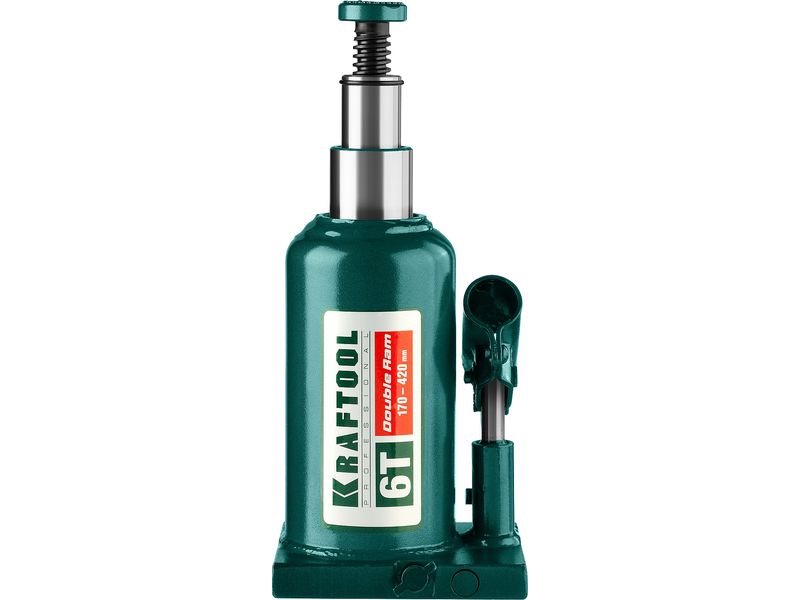 Домкрат гидравлический бутылочный Double Ram , сварной, телескопический, 6т, 170-420мм, KRAFTOOL 43463-6 |