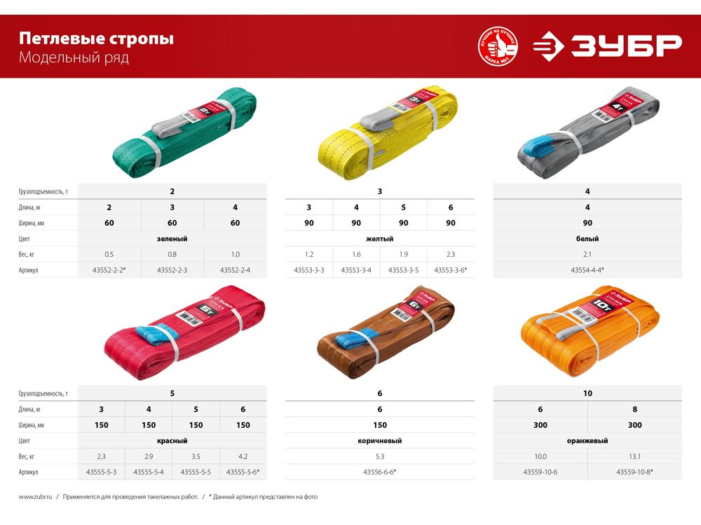 Ленты для строп окрашены в свой цвет в соответствии с международным цветовым кодом.