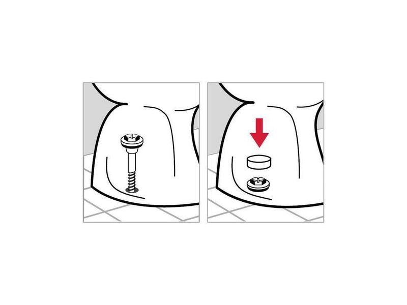 Набор включает в себя полный комплект крепежных изделий, необходимых для установки унитаза: дюбели, шурупы, декоративные колпачки и втулки пластмассовые