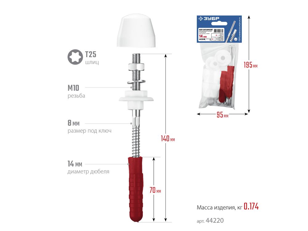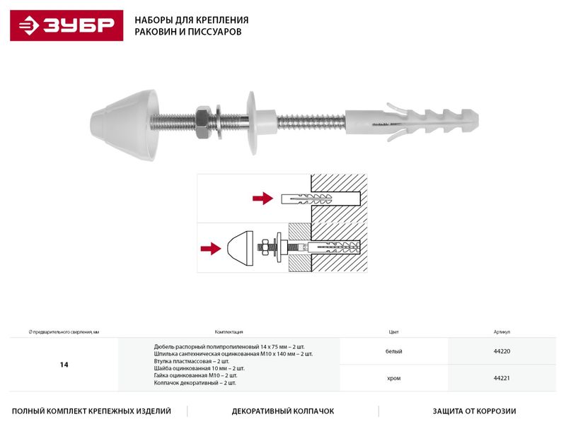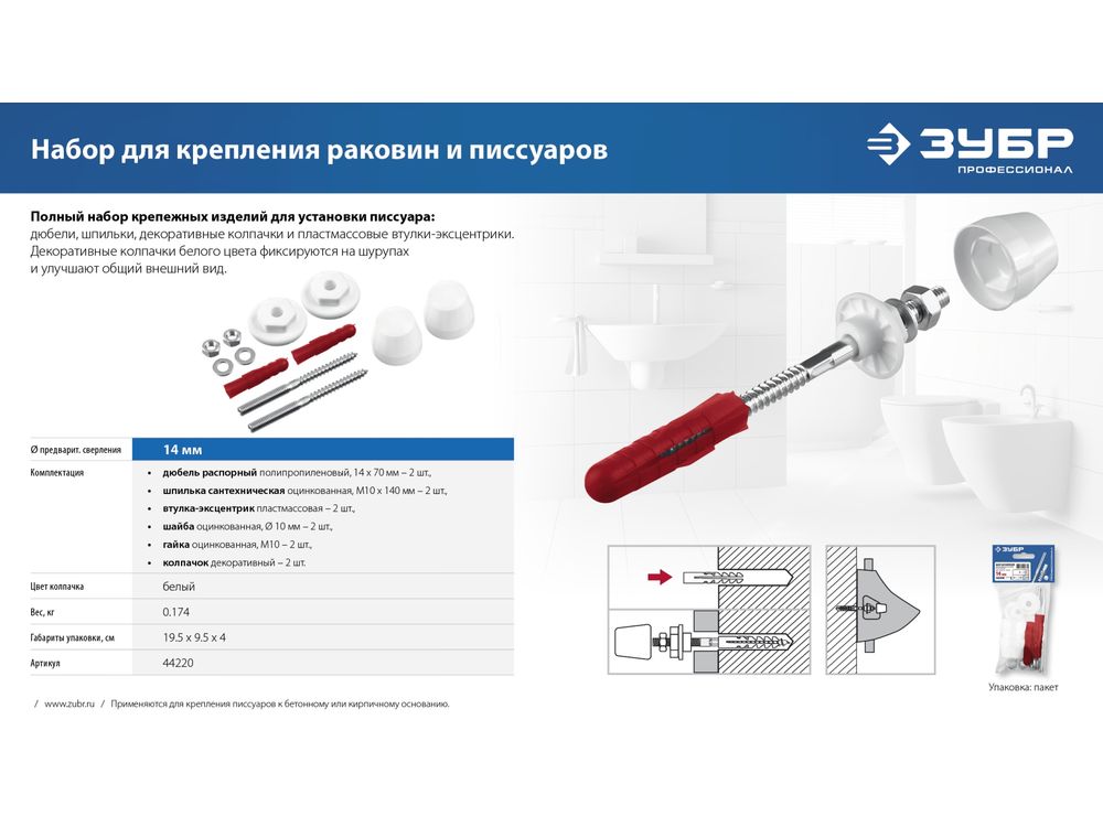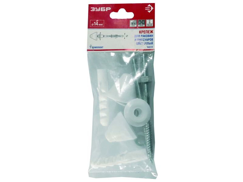 Набор ЗУБР для крепления раковин и писсуаров, диаметр предварительного сверления - 14 мм, цвет белый