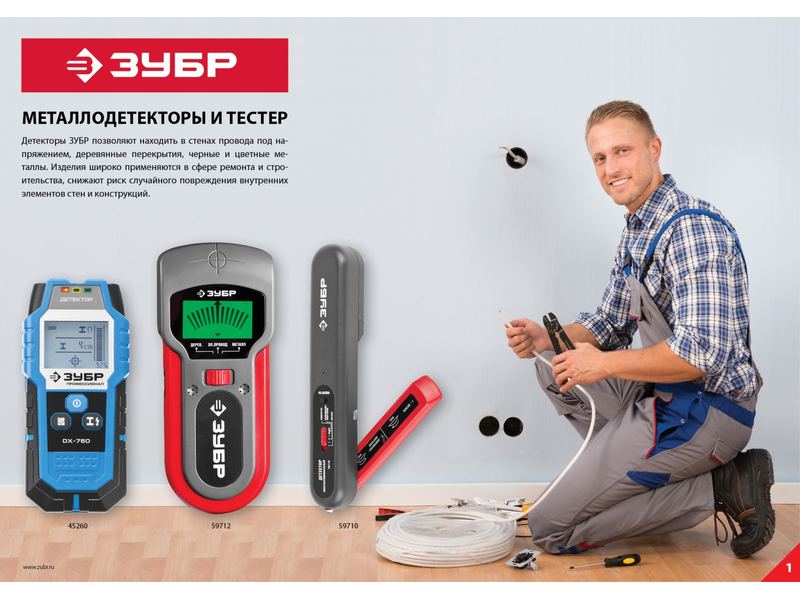 Предназначен для обнаружения черных и цветных металлов, а также электрокабелей под напряжением в стенах, потолках и полах. Глубина обнаружения: медные кабели под напряжением - до 50мм*, черных металлов - до 100мм**, цветных металлов - до 80мм**, деревянных брусков - до 20мм**). * меньшая глубина обнаружения, если электрокабель не находится под напряжением ** в зависимости от материала и размера объекта, а также материала и состояния основания