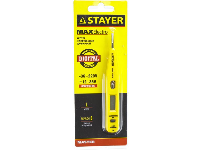 Тестер напряжения STAYER "MASTER" цифровой со световым индикатором, 12-220В, 125мм