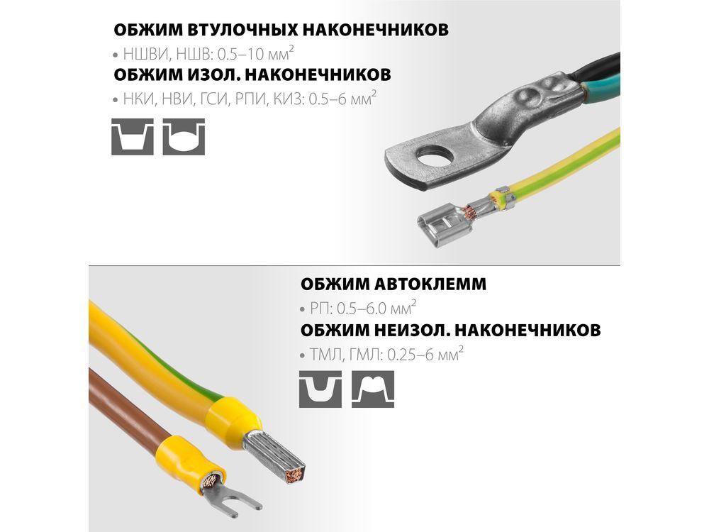 Рычажная конструкция обеспечивает удобство в процессе обжима наконечников