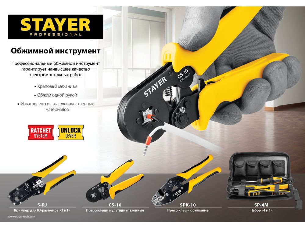 Купить SP-4M набор пресс-клещи, 4 матрицы, в сумке чехле, STAYER Professional