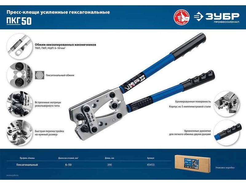 Пресс-клещи ЗУБР изготовлены из высококачественной стали, предназначены для профессионального применения. Обладают повышенным ресурсом, обеспечивает наивысшее качество электромонтажных работ.