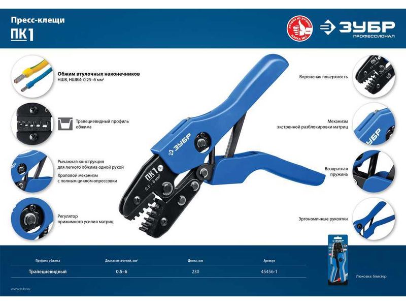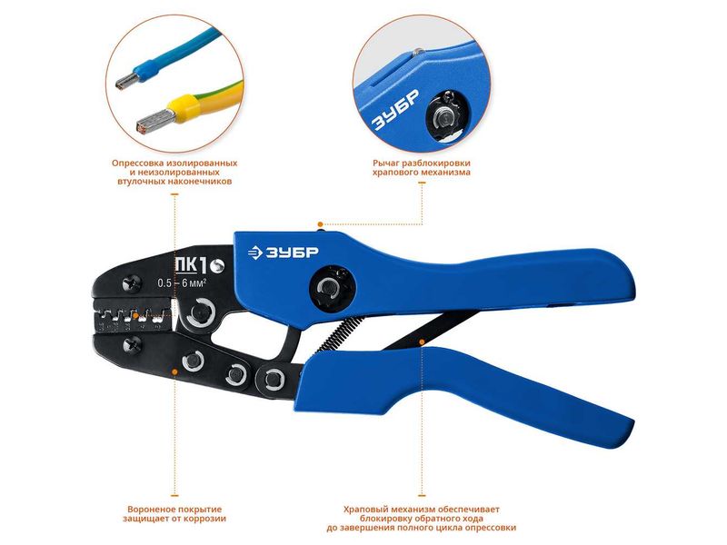 Пресс-клещи ЗУБР изготовлены из высококачественной стали, предназначены для профессионального применения. Обладают повышенным ресурсом, обеспечивает наивысшее качество электромонтажных работ.