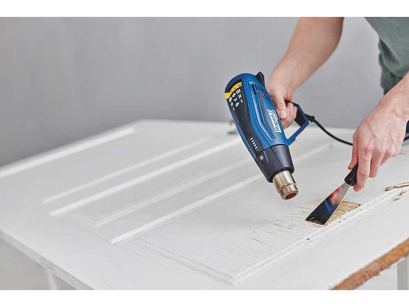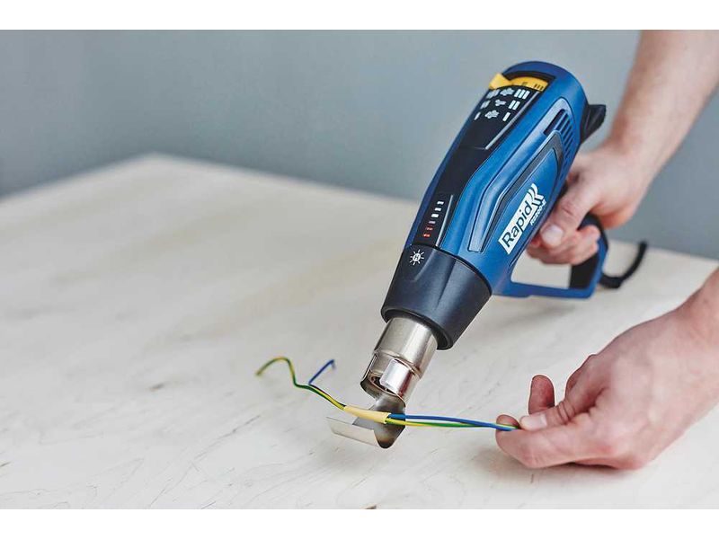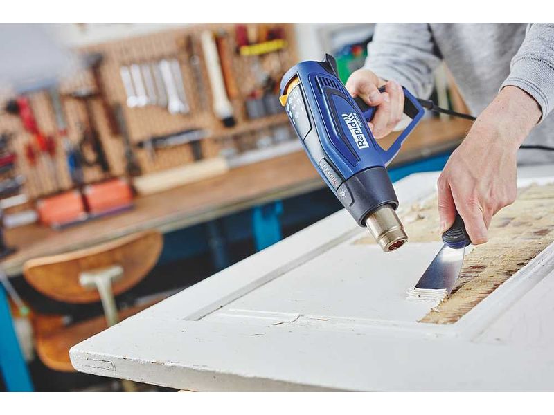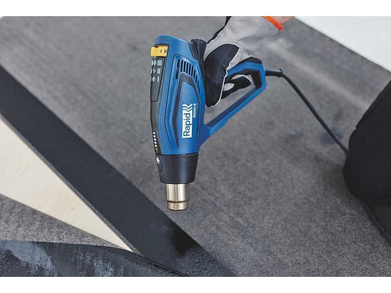 RAPID R2200 фен строительный 2200 Вт. Регулировка температуры: 60-650 °C. Расход воздуха: 250-500 л/мин. Светодиодная индикация нагрева