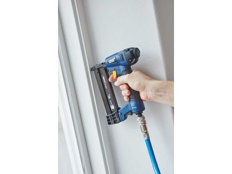 Для точных столярных задач, где работа инструмента практически не должна оставлять следов, идеальное решение это PMP171, пневматический гвоздезабивной пистолет для микрошпилек, предназначенный как для профессионалов, так и для требовательных домашних мастеров. Он использует микрошпильки 23 Ga размером до 35 мм, что делает его идеальным для крепления тонких молдингов, дверных и оконных рам, декоративной отделки, оснований и легкой мебели. Инструмент отличают система быстрой боковой загрузки расходников, контактный спуск для безопасной и точной работы и регулируемый на 360 ° выпуск воздуха, который отводит пыль от рабочих поверхностей.