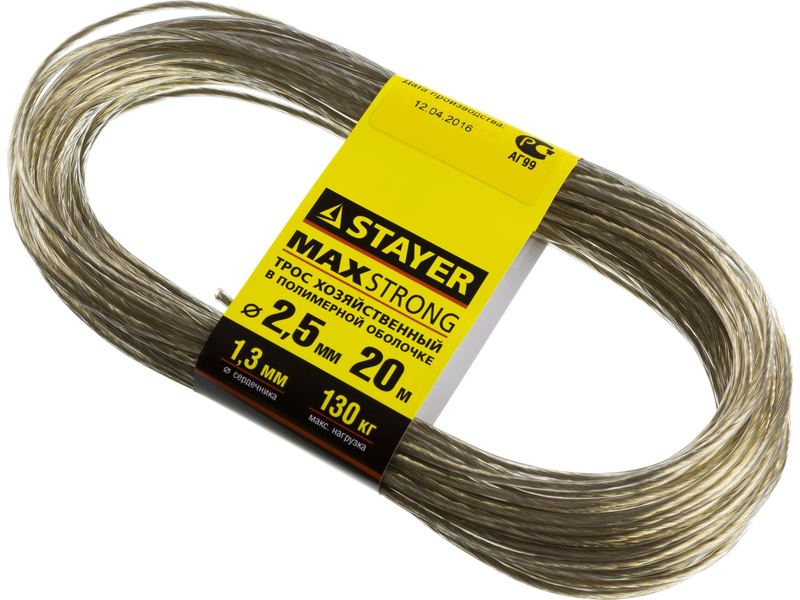 Купить Трос хозяйственный STAYER "MASTER", стальной в полимерной оболочке, 20 метров, 2,5мм