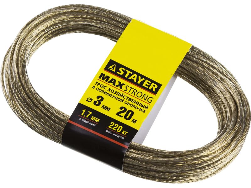 Хозяйственный трос Stayer предназначен для хозяйственно-бытового применения, при работе под статической нагрузкой. Высокое качество материалов и непрерывный контроль качества на всех этапах производства гарантируют высокое качество.