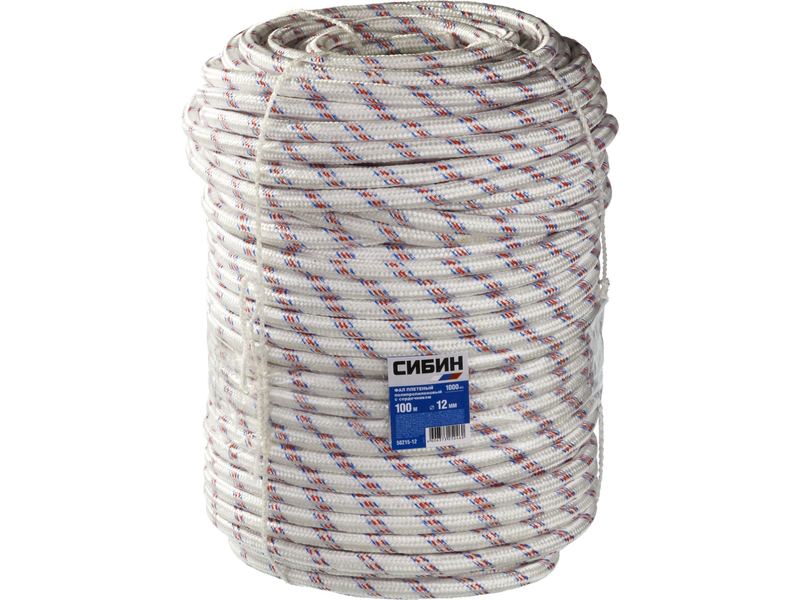 Фал плетёный полипропиленовый СИБИН 24-прядный с полипропиленовым сердечником, диаметр 12 мм, бухта 100 м, 1000 кгс |