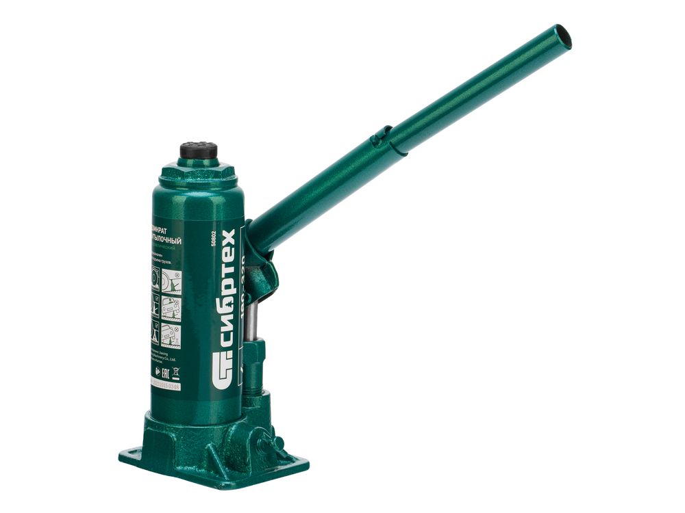 Домкрат гидравлический бутылочный Сибртех 50802 предназначен для подъема грузов массой до 4 т на высоту от 180 до 320 мм. Не требует больших усилий от пользователя и значительно облегчает рабочий процесс. Домкрат будет полезен при проведении техобслуживания машины в автосервисе или гараже.