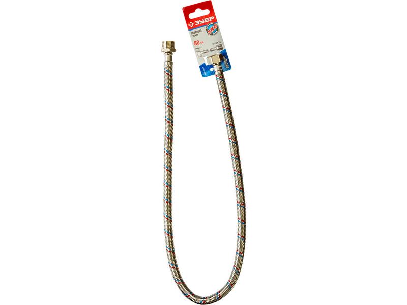 Купить Подводка гибкая Зубр для воды, оплетка из нержавеющей стали, г/г 1/2 - 0,8м