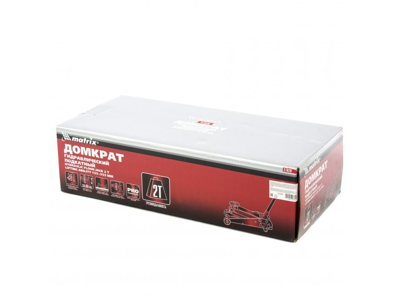 Подкатной гидравлический домкрат Matrix 51020 с высотой подхвата 135 мм, — полупрофессиональное гаражное оборудование, способное поднимать груз массой до 2 т на высоту до 355 мм. Высота подхвата 135 мм позволяет использовать домкрат для автомашин со стандартным клиренсом. Домкрат будет полезен как в автомастерской, так и в частном гараже.