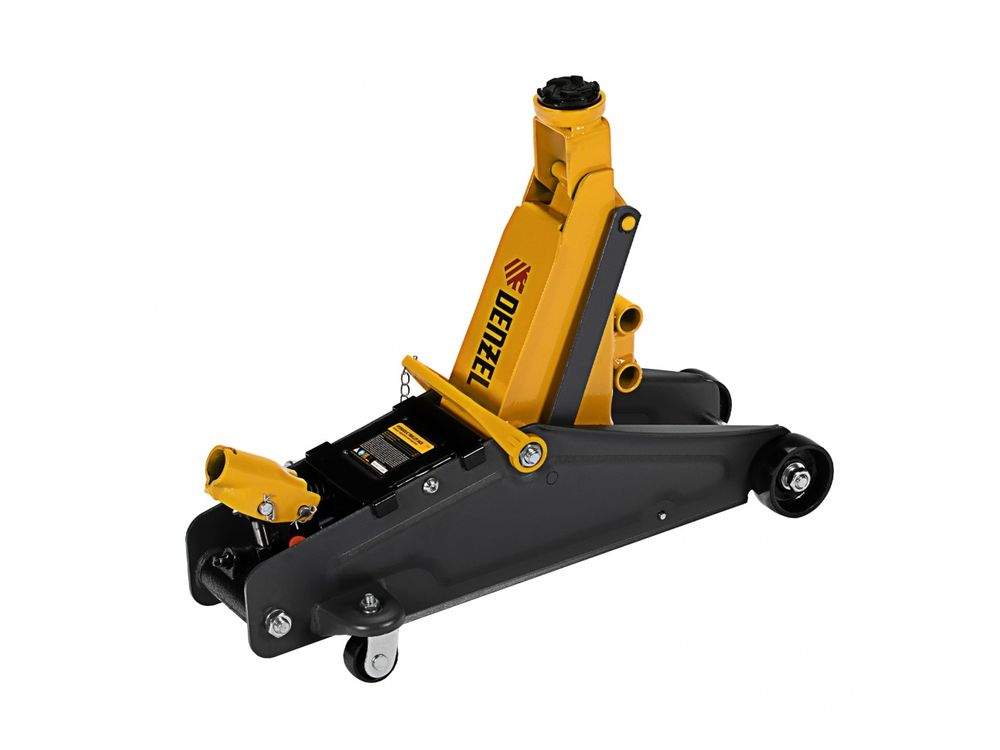Гидравлический подкатной домкрат с фиксатором Denzel 51156, с высотой подхвата 135 мм, предназначен для плавного подъема грузов массой до 2,8 т на высоту до 385 мм. Страховочный штифт позволяет фиксировать подъемный рычаг на высоте 305 и 370 мм для безопасной работы. Домкрат пригодится владельцам легковых автомобилей со стандартным клиренсом.