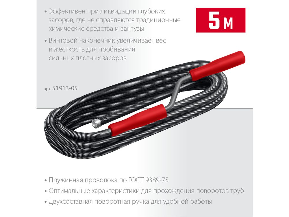 Купить СИБИН 5 м, d 13 мм, Сантехнический трос (51913-05)